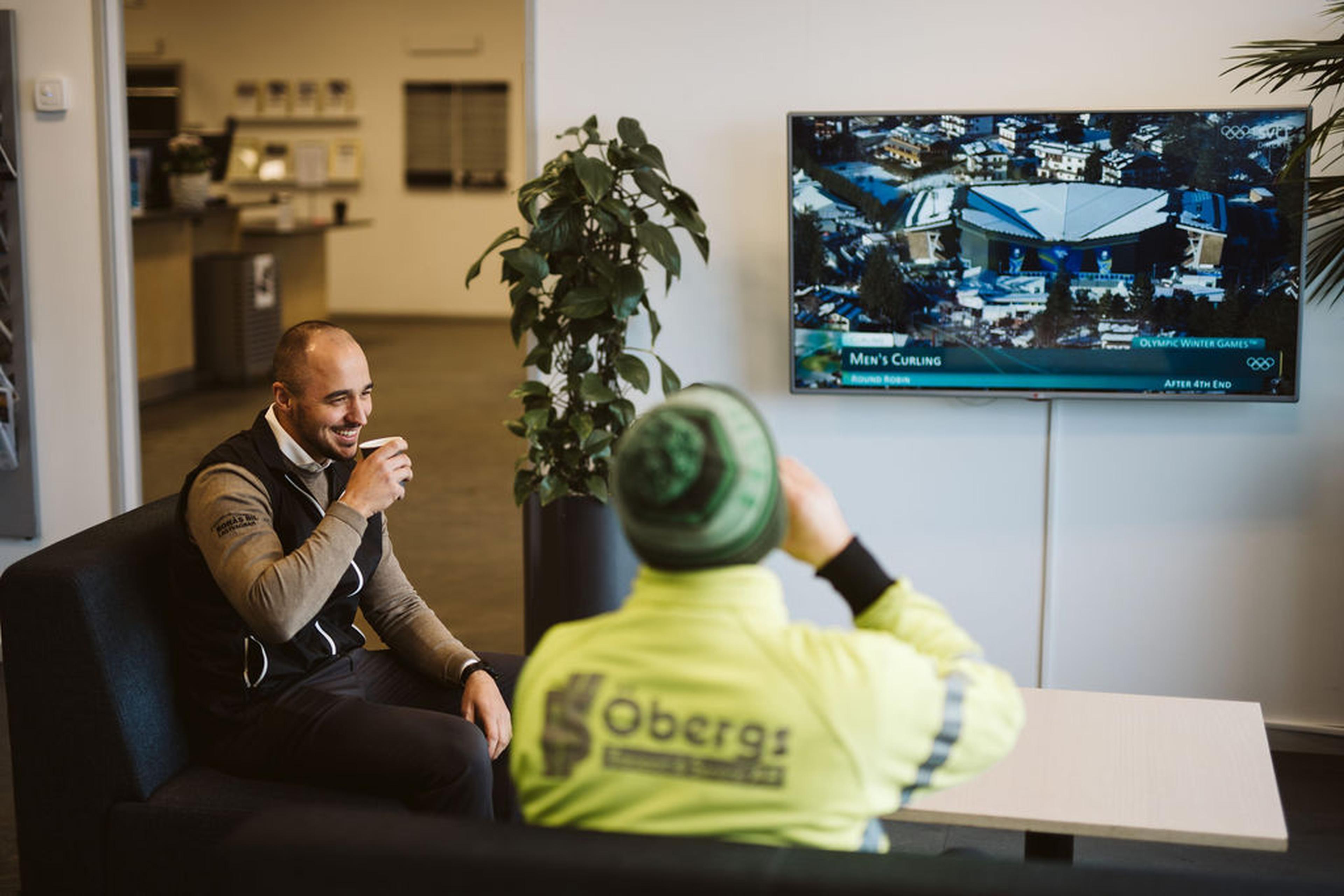 I vår lounge tar vi emot våra kunder och umgås över en kaffe för att lära känna varandra.